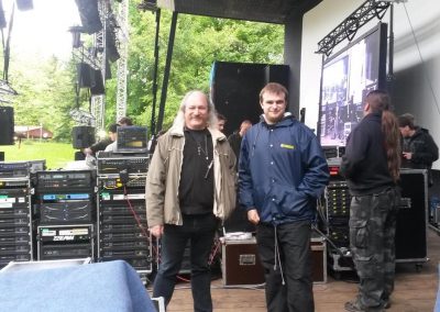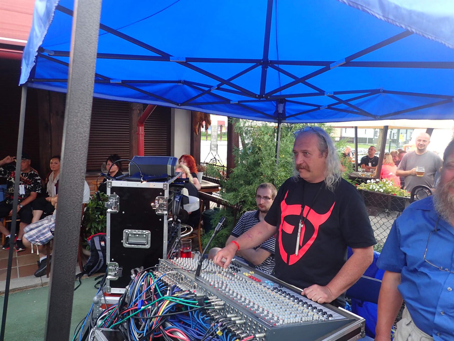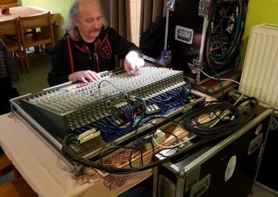Vlastníme čtyřpásmový analogový PA systém o výkonu 12kW vlastní konstrukce, která vychází z profesionálního systému KV2, a dostatek dalšího vybavení pro zdárný a bezproblémový průběh uvedených akcí.